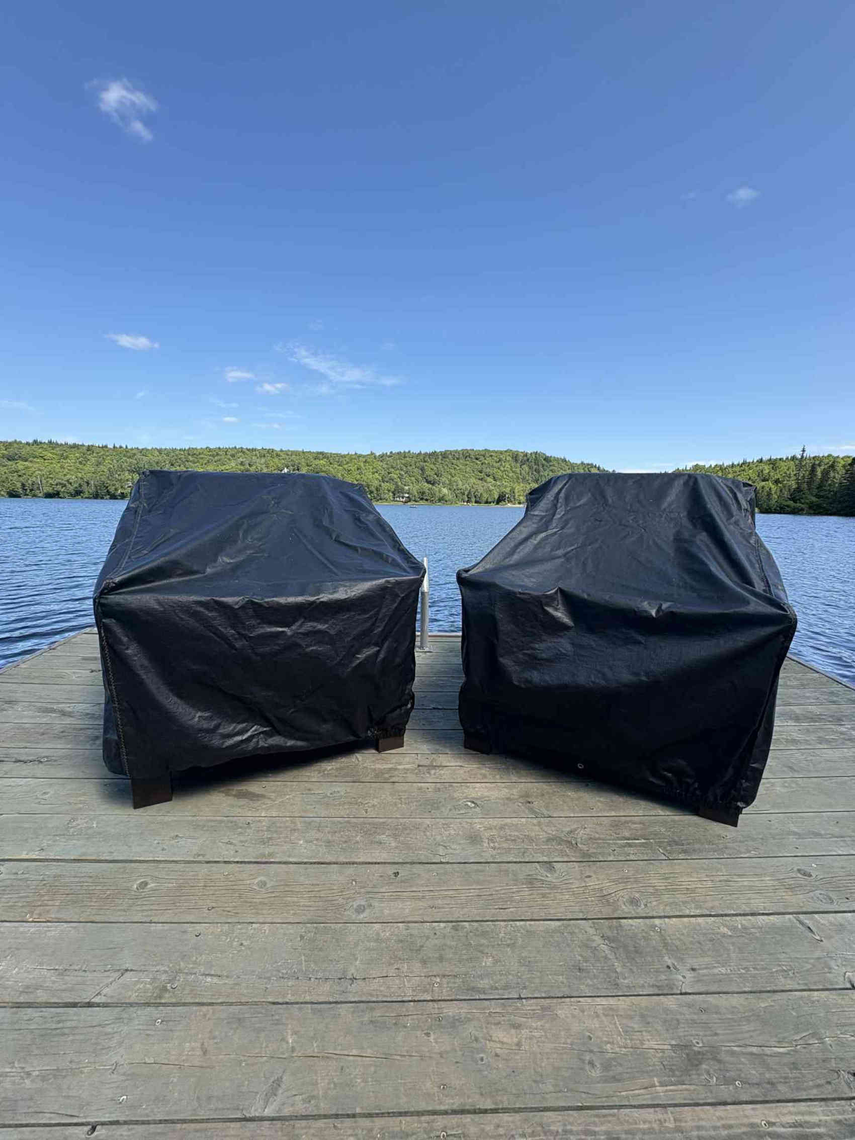En effet, nous fabriquons l’ensemble des housses pour mobilier de patio extérieur sur mesure avec un tissu en PVC laminé qui offre une grande résistance au vent, aux intempéries (pluie, neige, grêle, etc.), aux déchirures, aux rayons ultraviolets, à la chaleur, etc. Toutefois, la couture des housses n’est pas 100% imperméable, il est donc préférable de ne pas laisser l’eau s’accumuler sur la toile à ces endroits ou de mettre quelque chose en dessous. Nos housses sont disponibles en 3 couleurs soit noir, gris charcoal et beige.